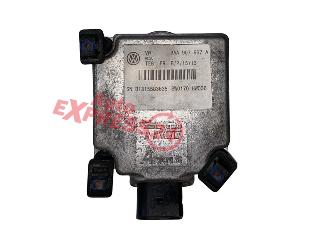 Adaptabilní radar tempomat ACC řídící jednotka se softwarem pro automatickou regulaci vzdálenosti a čidlem radaru z vozu VW Passat B7 r.v. 2013