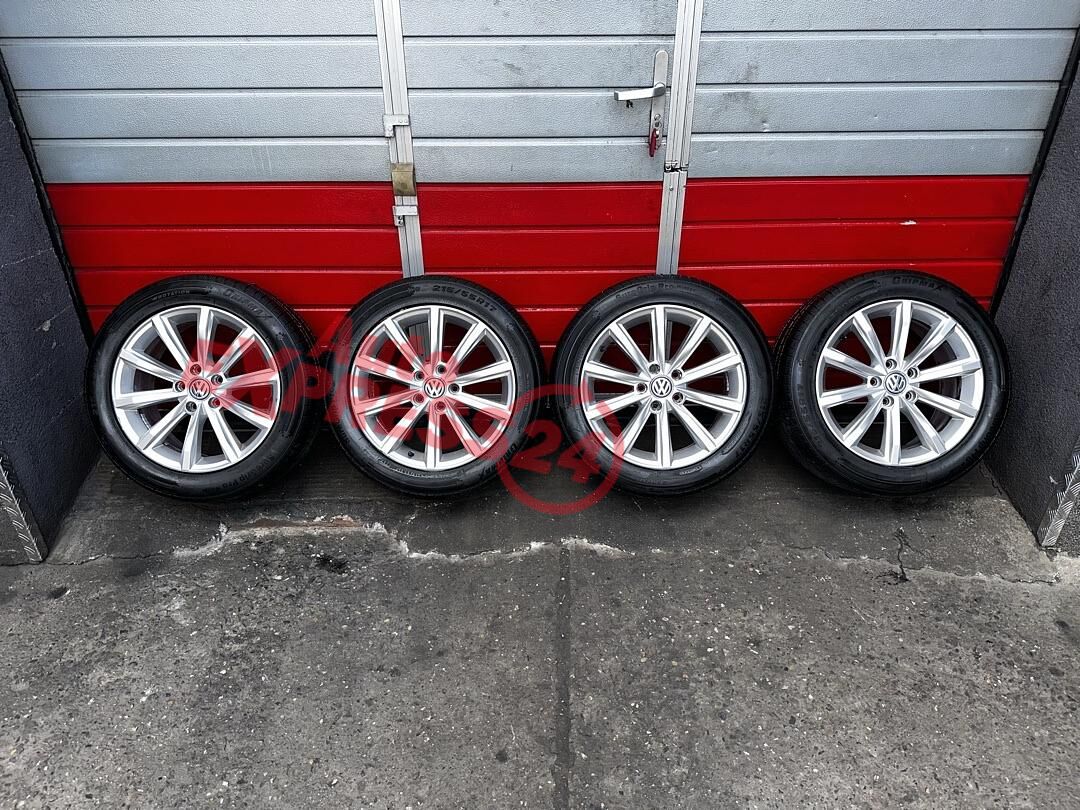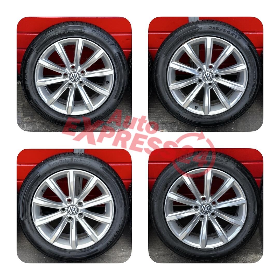 Original ALU kola VW London z vozu VW Passat B8 r.v. 2017 rozměr 17" 7J ET40 obuté na zimních pneu o rozměru 215/55/R17